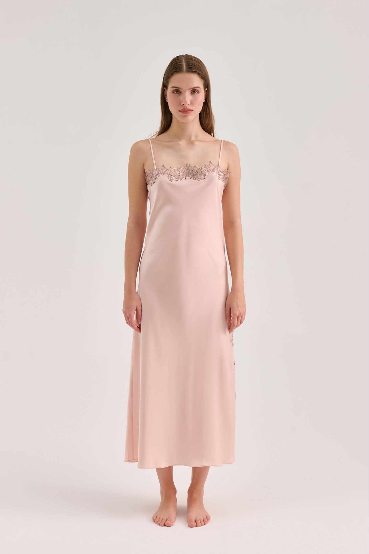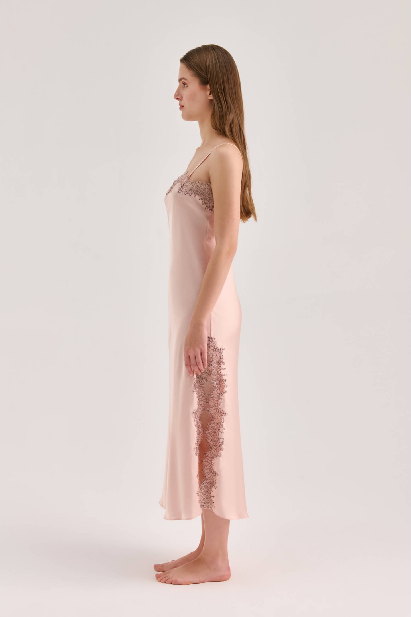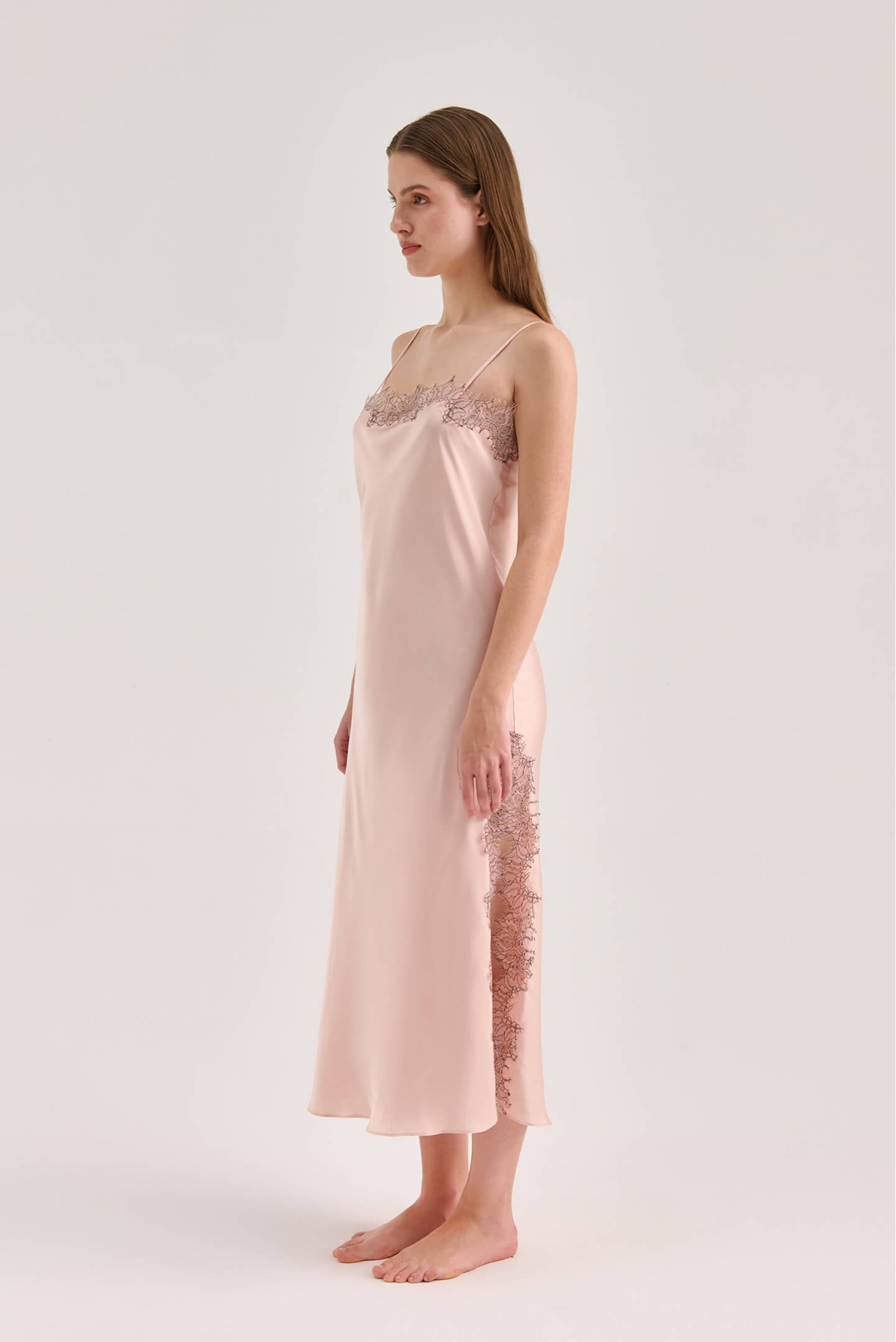 Refined elegance with a touch of allure — the Lace Detailed Straight Neck Midi Dress with Slit is a head-turning choice for formal events, evening outings, or sophisticated date nights. Designed with a clean straight neckline with subtle Caudry lace detailing, and a thigh-high slit, it flatters every curve while exuding understated glamour.