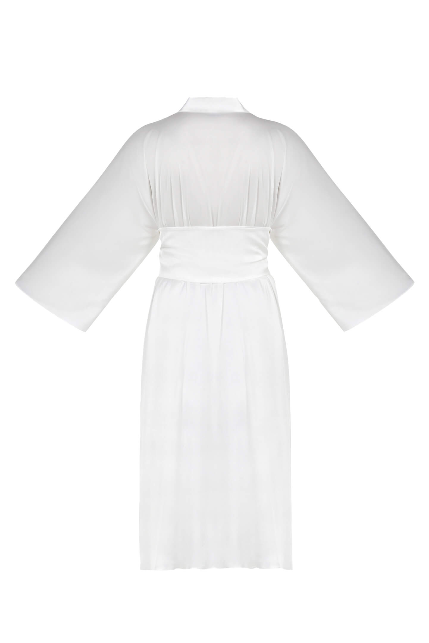 A detachable, sculptural wide belt defines the waist, offering structured elegance and an adjustable fit. With its minimalist silhouette, graceful drape, and subtle sheen, it moves with intention — ideal for bridal prep, elevated lounging, or evening layering.
